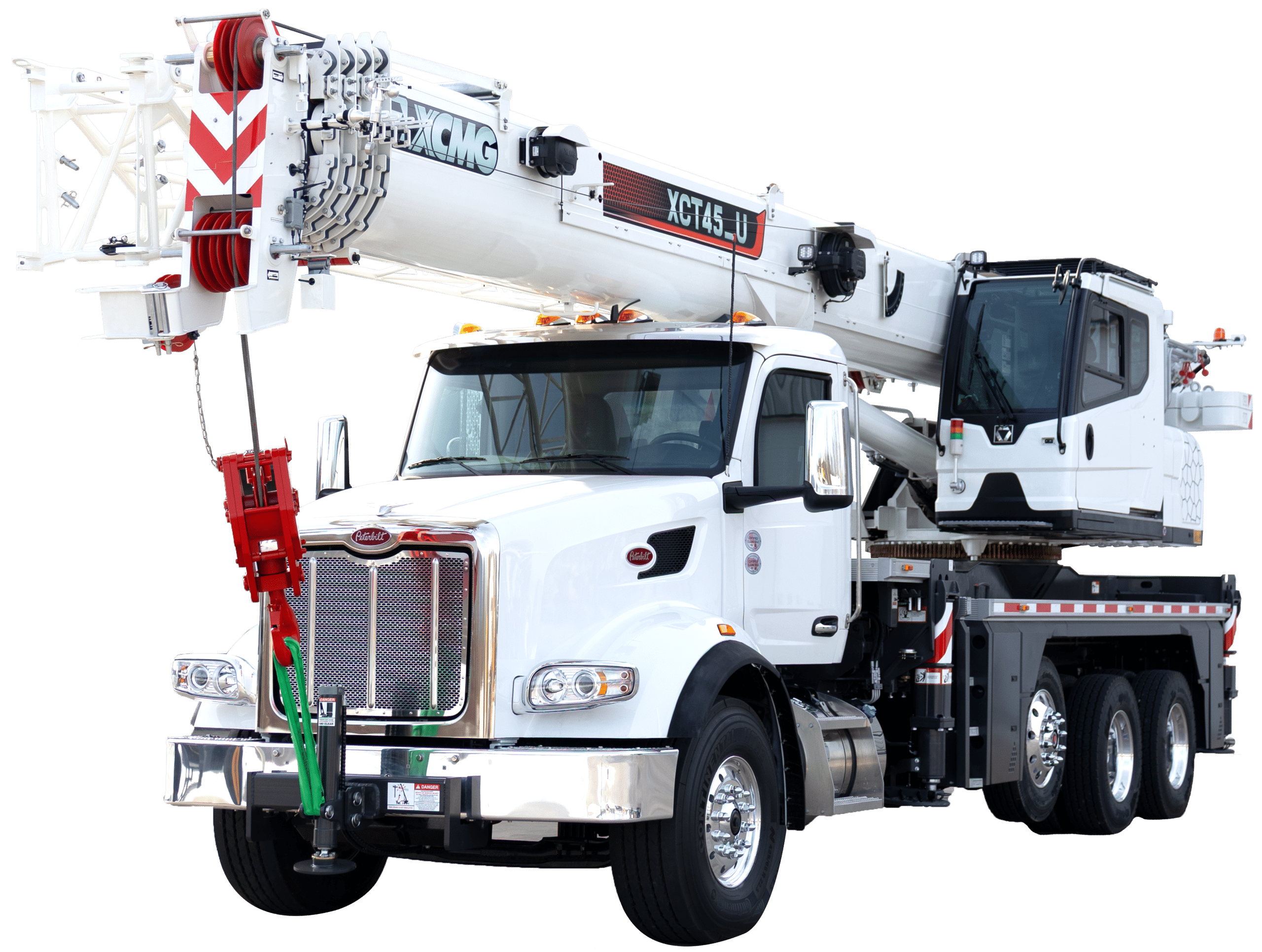 The XCT40U runs a five-section U-shaped boom at 142 ft of reach. That cross-section resists deflection under load, keeping placement precise at full extension where other booms start to wander. Built for the job, not just the spec sheet. Dual variable displacement pumps deliver smoother, more responsive control across every function: swing, lift, extension. Higher hydraulic efficiency means less heat buildup through a long day and consistent performance from the first pick to the last. The XCT40U, XCT45U, and XCT60U feature independent proportional boom section control. Each section extends to the exact percentage needed for the lift rather than moving all sections together. The onboard LMI recommends the optimal boom configuration to maximize lifting capacity before you make a move, so every pick gets the most out of the crane. Click here to learn about XCMG’s full portfolio of boom trucks.